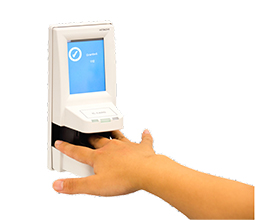 圖一、指靜脈辨識技術的應用原理(左圖)及系統實體(右圖